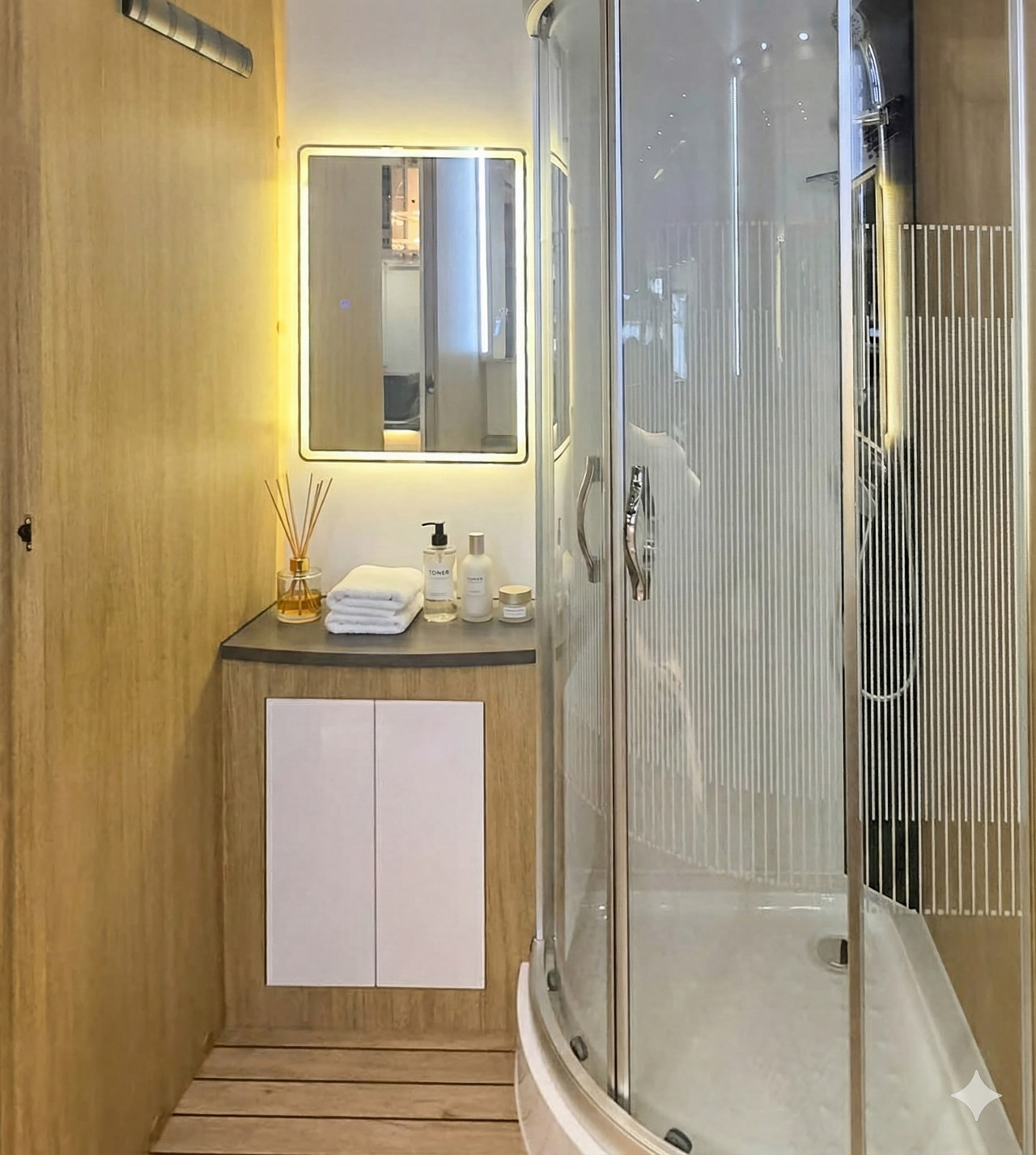 프리미엄 운전석 시트는 편안한 착좌감과 회전 기능을 갖추어 효율적인 공간 활용을 가능하게 합니다.